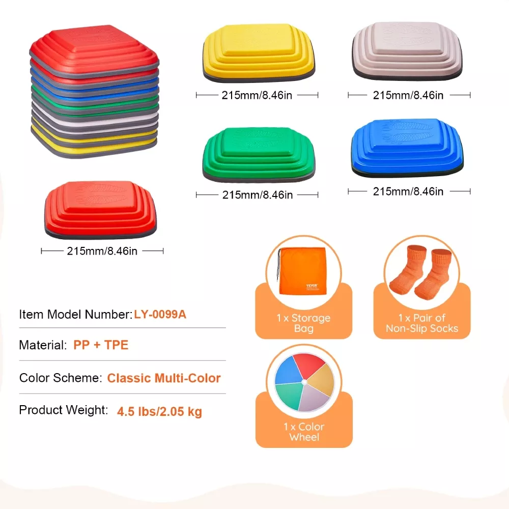 Introduce your little ones to a world of active play and sensory stimulation with these colorful and versatile 10PCS Balance Stepping Stones. Designed for children, these stepping stones make balance training exciting and enjoyable, combining physical activity with playful learning. Whether indoors or outdoors, these stepping stones encourage kids to improve their balance, coordination, and motor skills in a safe and fun environment.