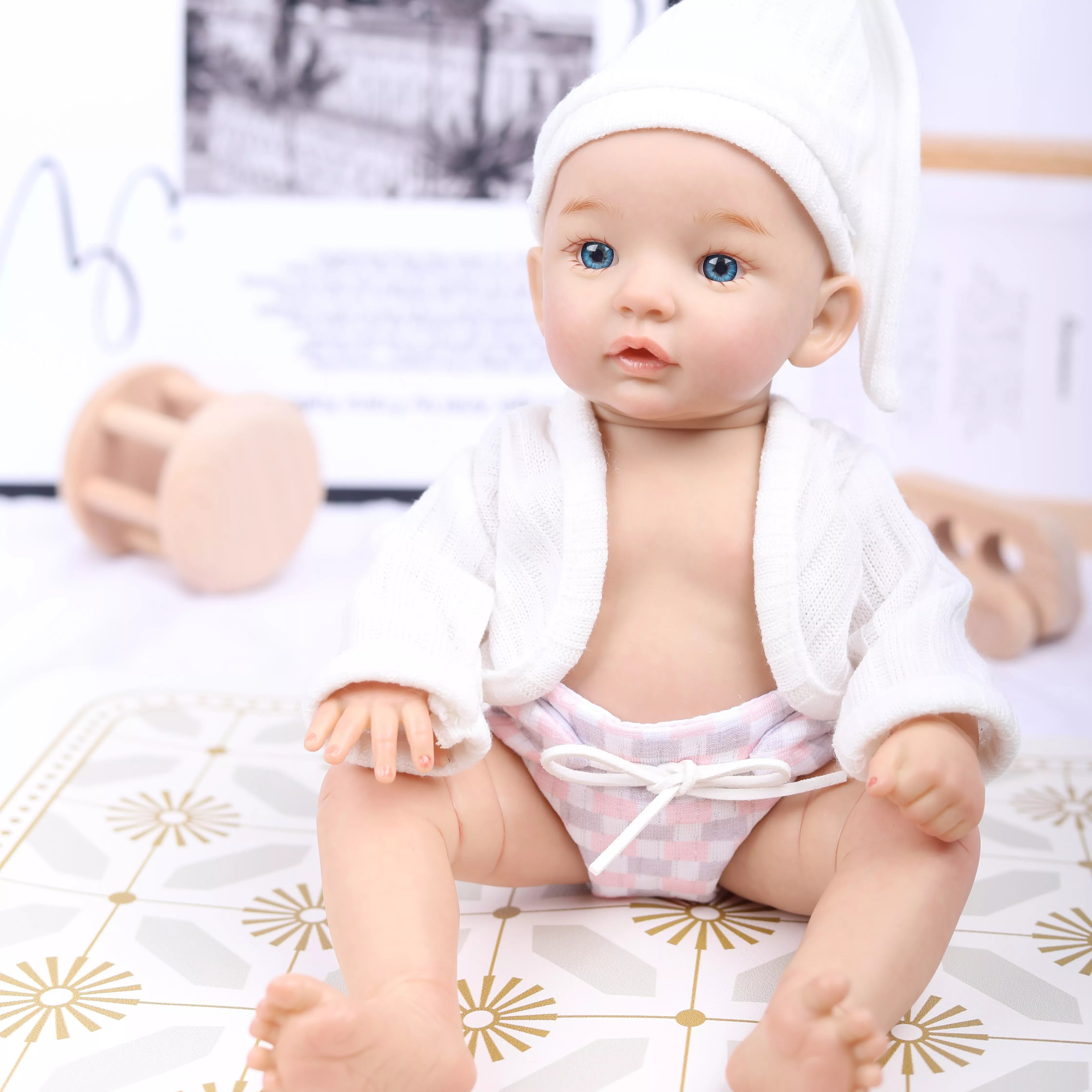 This 12-inch mini reborn doll is the perfect companion for children and collectors alike. Handmade with intricate attention to detail, this doll features a soft vinyl skin that gives it a realistic and adorable look. Whether you’re looking to enhance your child’s imaginative play or add a unique piece to your doll collection, this mini reborn doll is sure to impress. Its cute features, customizable accessories, and interactive design make it a must-have toy for all ages.