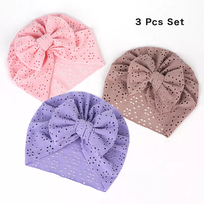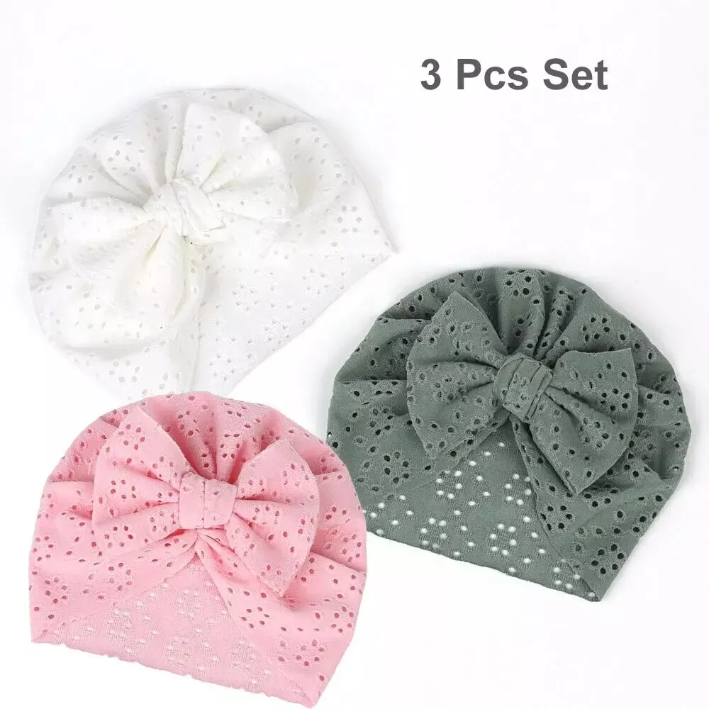 3-Pack Baby Bow Turban Hats – Soft Mesh Beanie for Newborns (0–6 Months)