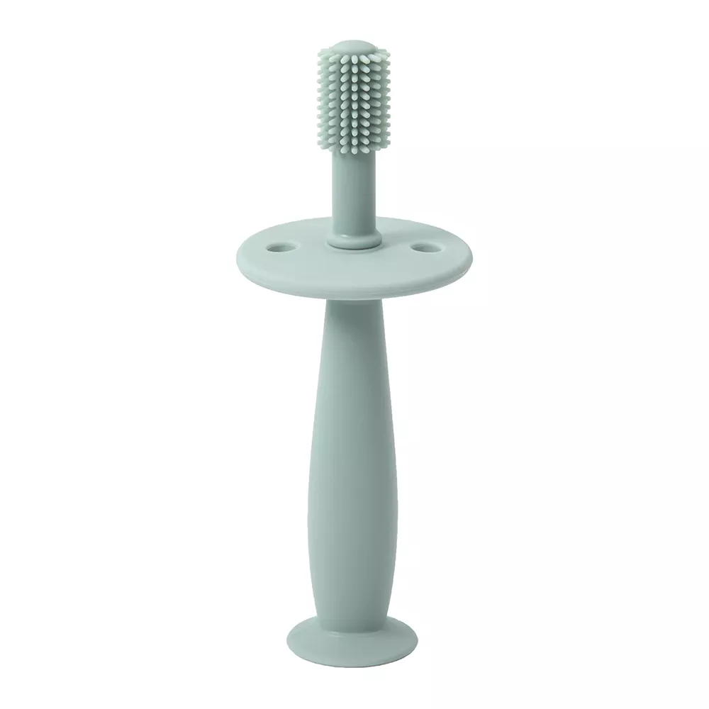 Its unique 360-degree bristle design provides thorough cleaning from every angle, making oral care easier and more effective, even for squirmy little ones. The wide ergonomic handle ensures a firm grip for small hands while also protecting against choking by preventing deep insertion. Whether your child is teething or transitioning into a brushing routine, this toothbrush is the perfect fit for ages 2 months to 6 years.