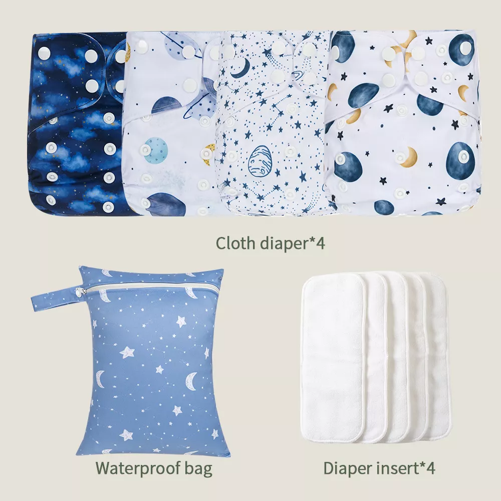 This practical yet adorable set includes 9 waterproof cloth diapers, absorbent inserts, and a convenient wet bag for storage. Perfect for day or night use, at home or on outings, these diapers keep leaks under control while offering breathable comfort. The portable storage bag lets you pack used or clean diapers without mess, making this the ultimate diapering solution for busy parents.