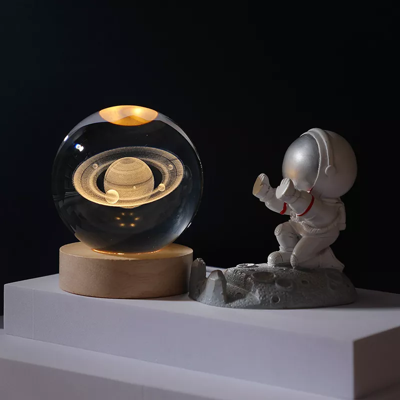 Unlike ordinary lamps, this mini night light blends art and function. The crystal-clear ball features an intricate laser-engraved celestial scene that comes to life with soft LED illumination. Mounted on a natural beechwood base — free from paint or toxins — it offers a warm, eco-friendly accent to any space. Whether you choose the galaxy, Saturn, or moon design, each one feels like a personal piece of the universe.