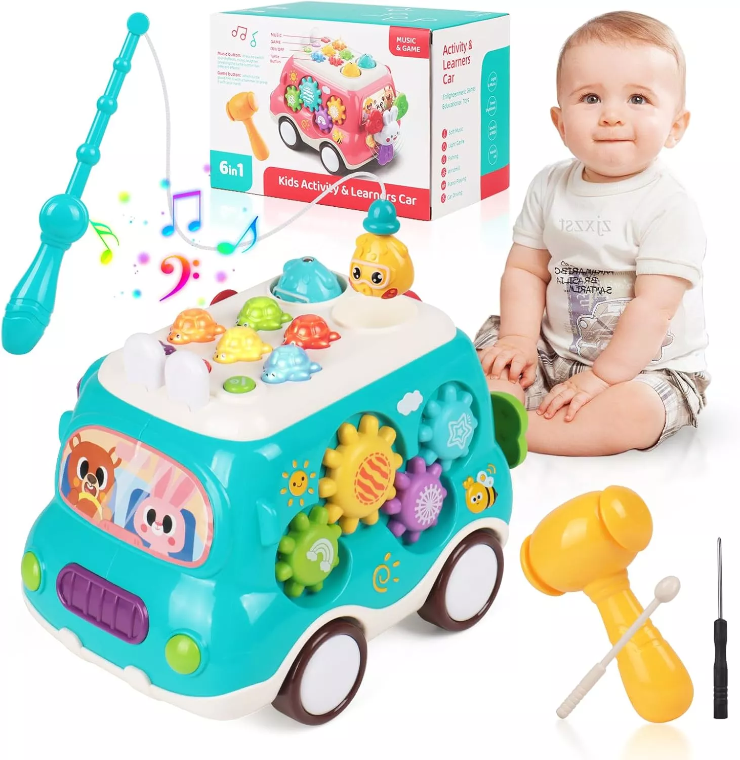 Let your little one explore, play, and learn all at once with the Montessori Baby Musical Activity Bus. Designed for curious minds aged 1 to 3, this engaging toy combines music, lights, movement, and hands-on activities into one fun-packed sensory learning bus. From playing the xylophone and hammering colorful moles to spinning gears and fishing for magnetic animals, every feature encourages your child’s natural curiosity and supports their development.
