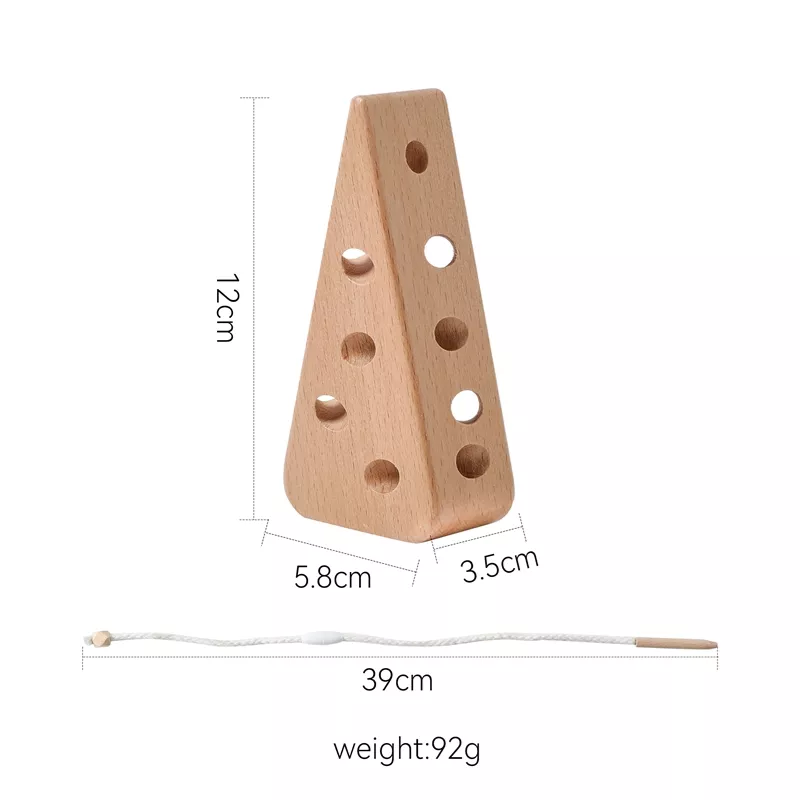 Make learning fun and interactive with this Montessori wooden cheese threading toy. It’s more than just a toy — it’s a hands-on experience that nurtures development from the very first touch.