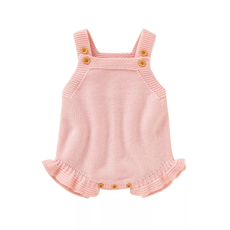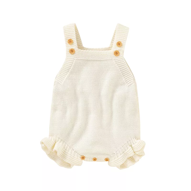Dress your baby girl in charm and comfort with this sleeveless knitted bodysuit, designed to make every moment picture-perfect. Featuring sweet ruffle accents and a soft, breathable knit, this one-piece is perfect for everyday play, cozy naps, or those special family photos. Whether she’s crawling, cuddling, or simply soaking up all the attention, this outfit brings together timeless cuteness and all-season comfort.