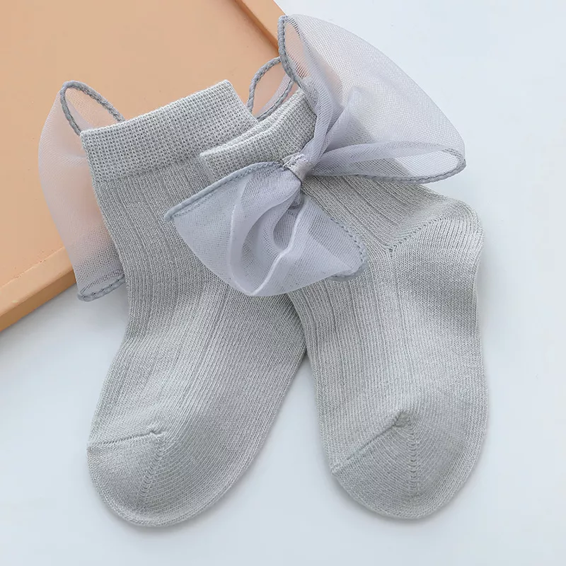 These lace socks with a bow are not just cute—they are designed with care and attention to detail to provide comfort, breathability, and style for your little one. The soft cotton material ensures a gentle feel against your baby’s skin, making them suitable for even the most sensitive feet. The stretchable spandex allows these socks to grow with your baby, ensuring they stay snug and comfortable as your little princess moves around.