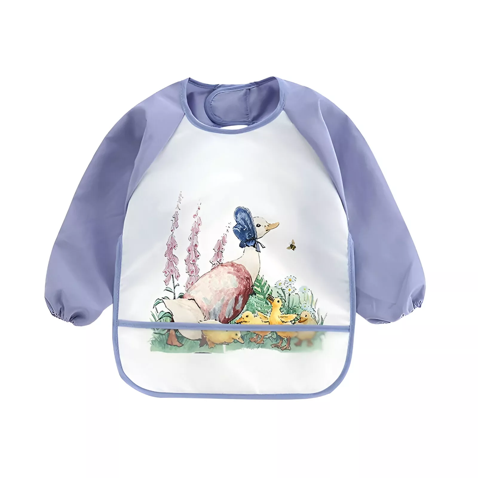 Made from soft, durable polyester, this smock-style bib features long sleeves with elastic cuffs to protect your baby’s clothes from spills, splashes, and stains. The easy-on design fits most toddlers thanks to its one-size-fits-all build, and the vibrant cartoon animal prints make every mealtime a little more playful. Just pop it on, and let your little one explore food freely — without the laundry stress afterward.
