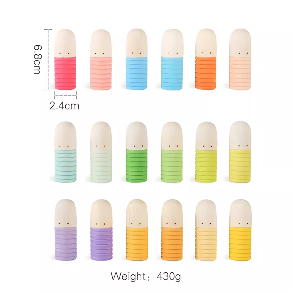 Perfect for children ages 0-3, the toy set includes colorful thumb figure dolls that are easy to grip, making them ideal for little hands. Whether used for stacking, sorting, or building, the rainbow building blocks stimulate creativity and foster fine motor skills development. The thoughtful design makes this toy an excellent tool for introducing basic concepts such as colors, shapes, and spatial awareness.